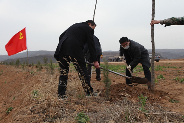 12日上午,有的同志從家里帶來(lái)鐵鍬、尖鎬等植樹(shù)工具,在該礦黨政組織下自駕車(chē)來(lái)到紅土矸山開(kāi)展植樹(shù)活動(dòng)。在植樹(shù)現(xiàn)場(chǎng),黨旗隨風(fēng)飄揚(yáng),植樹(shù)人員干勁十足。該礦黨政領(lǐng)導(dǎo)武永發(fā)、高金宇帶領(lǐng)大家挖坑栽樹(shù)。大家團(tuán)結(jié)協(xié)作,有的揮鎬挖坑,有的培土,有的將一棵棵樹(shù)苗認(rèn)真的栽入坑中,扶正、填土、壓實(shí)、澆水植樹(shù)環(huán)節(jié)一絲不茍,認(rèn)真把握好每個(gè)植樹(shù)細(xì)節(jié),確保種植一棵、成活一棵、美化一片。