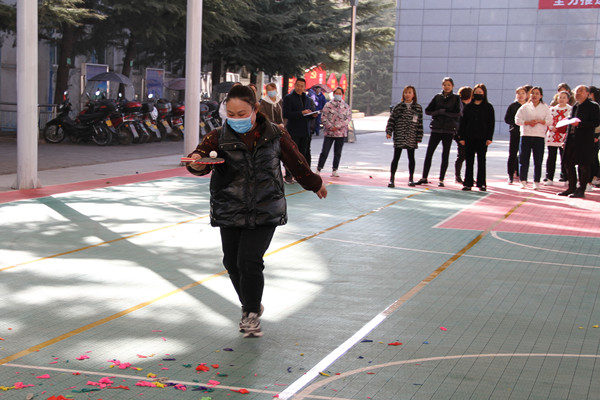 活動還未開始,女職工們已經躍躍欲試,隨著裁判的哨聲響起,接力賽的第一棒選手像是腳踩風火輪,跑到接力點,費力地踩著腳上的氣球,“加油,快向左踩!”“踩右邊!右邊!”“噢!贏了贏了!”在第一個踩氣球環(huán)節(jié)中,氣球啪啪如爆竹聲般清脆,雖然有的遲遲踩不到氣球,但是她們還是堅持到了最后,整個比賽現場氣氛熱烈,充滿激情,吶喊聲、歡笑聲響成一片。