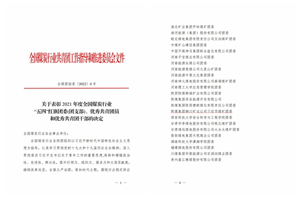 近日,從上級(jí)團(tuán)組織傳來(lái)喜訊,下石節(jié)煤礦黨群工作部(團(tuán)委)以扎實(shí)的工作業(yè)績(jī)榮獲2021年度全國(guó)煤炭行業(yè)“五四”紅旗團(tuán)委稱號(hào),榮譽(yù)既是鼓勵(lì),更是鞭策,激勵(lì)該礦共青團(tuán)工作不斷優(yōu)化創(chuàng)新,持續(xù)邁上新臺(tái)階。