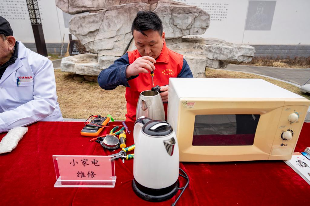 “小服務(wù)”匯聚“大幸?!?。梅苑小區(qū)便民服務(wù)點(diǎn)前,志愿者們?yōu)榫用裉峁坌睦戆l(fā)、小家電維修、愛心茶水、政策咨詢等多項(xiàng)服務(wù)?!凹敉觐^發(fā)精神多了!”“電水壺修好了,省得買新的......”住戶們臉上洋溢的笑容,成為志愿服務(wù)最生動的注腳。