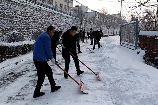 該項(xiàng)目部充分發(fā)揮黨支部的戰(zhàn)斗堡壘作用,迅速組織黨員干部職工和志愿者積極開(kāi)展掃雪除冰活動(dòng),對(duì)轄區(qū)主干道及時(shí)進(jìn)行除冰清雪,他們頂著凜冽的風(fēng)雪,以鏟子、鐵鎬和掃帚為武器,以小區(qū)道路、人行橫道以及陡坡步梯、樓道進(jìn)出口等職工群眾出行必經(jīng)之地為戰(zhàn)場(chǎng),主次干道做到了無(wú)積雪、無(wú)泥濘,路面、道線(xiàn)清晰可見(jiàn),消除了雨雪造成的步行和車(chē)道隱患,保證了節(jié)日期間職工群眾的正常通行。為職工群眾清掃出一條條“平安路”“溫暖路”。
