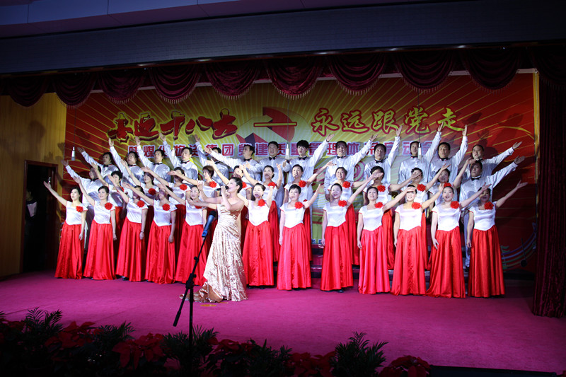 乘著陜煤化集團(tuán)推行黨建質(zhì)量管理體系建設(shè)的強(qiáng)勁東風(fēng),物資集團(tuán)在黨的十八大召開(kāi)前夕,以“喜迎十八大,永遠(yuǎn)跟黨走”主題晚會(huì),標(biāo)志著物資集團(tuán)推行黨建質(zhì)量管理體系建設(shè)盛裝起航。主題晚會(huì)由物資集團(tuán)銅川分公司主辦,分公司職工自編自導(dǎo)自演。晚會(huì)節(jié)目?jī)?nèi)容豐富多彩,形式獨(dú)具特色,表達(dá)了集團(tuán)公司干部職工“永遠(yuǎn)跟黨走”的共同心聲,唱響了對(duì)“快樂(lè)工作、體面生活”美好愿景的向往,展現(xiàn)銅川分公司深厚的文化積淀?!跋灿舜?,永遠(yuǎn)跟黨走”主題晚會(huì)在銅煤之聲合唱團(tuán)《唱支山歌給黨聽(tīng)》的合唱中拉開(kāi)了帷幕。歌伴舞《軍營(yíng)里飛來(lái)一只百靈鳥(niǎo)》伴隨著一群朝氣蓬勃、活力四射的舞姿,展現(xiàn)了分公司青工的活力與激情。富有情感的配樂(lè)詩(shī)朗誦《青春追夢(mèng)物流風(fēng)》真切的述說(shuō)了物資戰(zhàn)線的職工們把青春奉獻(xiàn)在自己的工作崗位上,為物流的大發(fā)展大繁榮再做佳績(jī)的豪邁情懷。退休職工輕漫飛舞的柔力球《五星紅旗》道出了職工群眾“快樂(lè)工作,體面生活”的真諦;小品《都是隨禮惹的禍》把這場(chǎng)文化盛宴推向了一個(gè)新的高潮,演員們惟妙惟肖、淋漓盡致的故事情節(jié)演繹,使觀眾在歡笑中領(lǐng)略到隨禮惹禍的小插曲。職工子弟的《少兒拉丁舞》和活力四射的街舞表演更是給觀眾視覺(jué)上的新沖擊,讓觀眾盡情品嘗了這場(chǎng)文化晚餐的獨(dú)到之處;薩克斯獨(dú)奏、男生二重唱、街舞等職工喜聞樂(lè)見(jiàn)的節(jié)目惹得在場(chǎng)觀眾笑的前仰后合,并奪得陣陣掌聲。整場(chǎng)晚會(huì)使觀眾完全沉醉在美妙的音樂(lè)和笑聲當(dāng)中。最后,這場(chǎng)“文化晚餐”在電聲小樂(lè)隊(duì)《愛(ài)我中華》中拉下了帷幕。