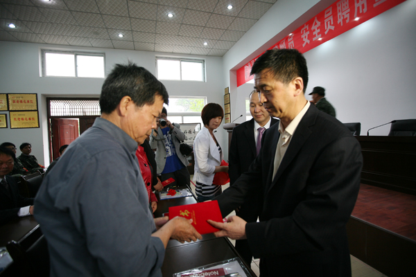 授旗儀式上,王家河社區(qū)管理中心主任張學海親自為搶險隊授旗。搶險隊政委接過鮮紅的隊旗并做了表態(tài)發(fā)言。同時,為一號井、礦部、斜井三個地區(qū)的李金峰等10名同志頒發(fā)了“安全工作義務管理員”聘書和鮮紅的治安巡邏袖章;為社區(qū)工作人員孫恒奇等5名工作人員頒發(fā)了“安全員”聘書。并制定了《安全員、群安員崗位責任制度》、《安全員、群安員工作職責》。通過此舉措,調動更多的轄區(qū)職工群眾積極參與到群防群治工作,不斷增強轄區(qū)職工群眾的安全意識,營造良好的社會治安秩序。