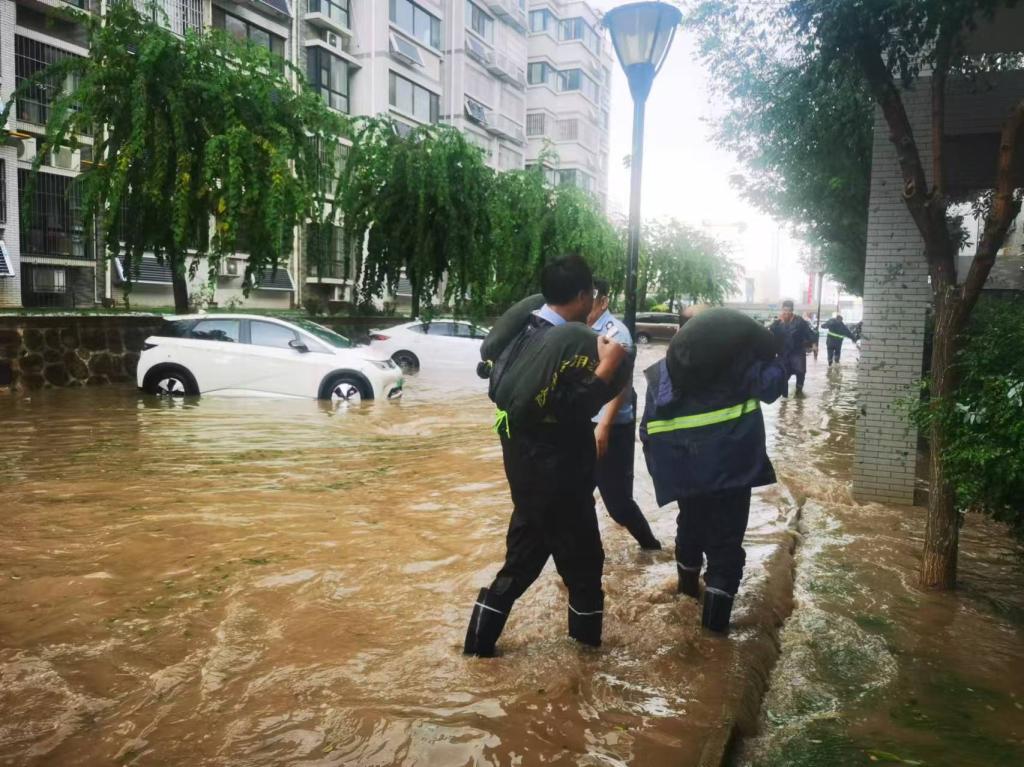 8月20日,銅川市遭遇罕見暴雨及冰雹極端天氣,強降雨導致銅煤繡園小區(qū)多處區(qū)域積水嚴重,給居民生活帶來極大不便。在這場突如其來的自然災害面前,銅煤繡園管理中心迅速響應,上下聯(lián)動,特別是黨員組成“黨員先鋒隊”沖鋒在前,全力以赴解決小區(qū)內的積水、安全隱患等問題,確保居民生命財產安全。