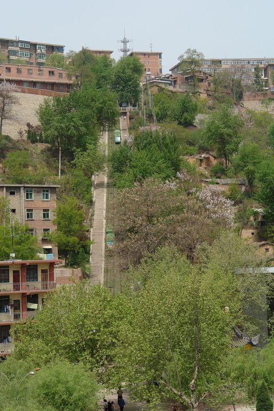 我不知道這樣的絞車別的地方有沒有:王石凹大約從20世紀50年代蘇聯(lián)人來建設的時候就開始有了——絞車道北邊有整齊的工房,那是蘇聯(lián)人建設的蘇式風格的職工宿舍,一般是二層紅磚樓,當時,那些房子是礦上有身份地位的干部的住宅。整齊的工房下的山溝里是密集的窯洞、礦工擁擠的棚戶。東邊是井架上轉(zhuǎn)動著的巨大天輪,連接著井下的鋼纜。有時,礦上的運煤火車噴著乳白色的濃煙轟鳴著駛進隧道……這些景致每天都在我眼前晃過。小孩子喜歡玩纜車,扒車跳車,有危險,跳不好就從山上滾下來受傷,學生的父母們都要叮囑自己的孩子不要扒車跳車,但還是能見到很多學生呼嘯著成群接隊地跳車扒車作為游戲。熟能生巧,很多人都練就了跳飛車扒飛車的功夫,我還沒有見過哪個人跳絞車受傷。有點可怕的是運煤的蒸汽火車。有些學生家住在火車道東邊——比我家住的翻砂組工場還要遠,每天上下學他們要過火車道,滿天星斗的凌晨,學生們就要成群結(jié)隊走過火車道。有時,看到蒸汽機車好像瞪大眼睛發(fā)射出亮白的遠射燈隆隆開來,龐大的機車像山一樣壓過來。當時,也聽說過有人經(jīng)過火車道時被軋斷了腿,流盡血送了命。蒸汽火車是運煤炭的。我記得火車開到銅川要四五十分鐘。一出王石凹車站,火車就鉆進一個長長的隧道,再開幾分鐘,到了喬子梁,又過一個長長的隧道?;疖囅耱暄训纳?,在黃土高原的溝壑里蠕動。