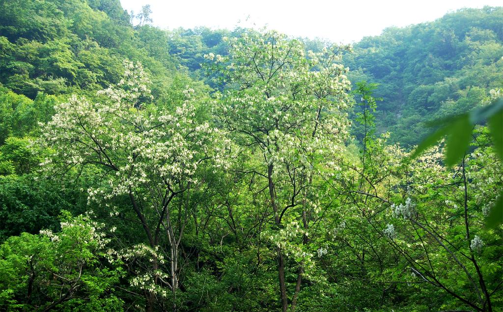 五月的槐花,鋪天蓋地,蓊郁蒼翠,有著頑強的生命力,不擇土壤的肥貧,不論條件之優(yōu)劣,深深地扎根在黃土地上,普通而實在。它用樸實的生命,點燃了黃土地綠色的希望,替陽光瀉綠流翠,為人類吐蜜送甜!