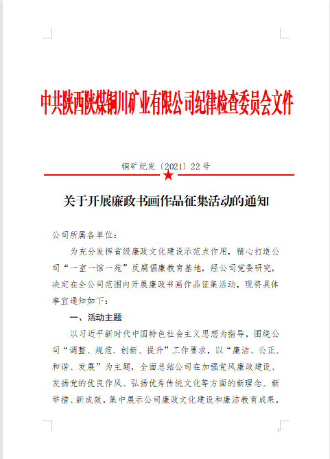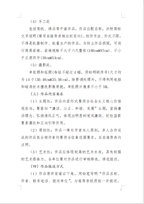 關(guān)于開展廉政書畫作品征集活動的通知