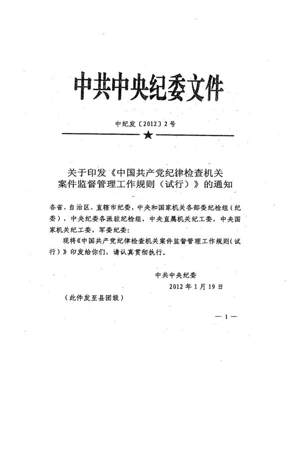 中共陜西陜煤銅川礦業(yè)有限公司紀(jì)律檢查委員會關(guān)于轉(zhuǎn)發(fā)《中國共產(chǎn)黨紀(jì)律檢查機(jī)關(guān)案件監(jiān)督管理工作規(guī)則(試行)》的通知