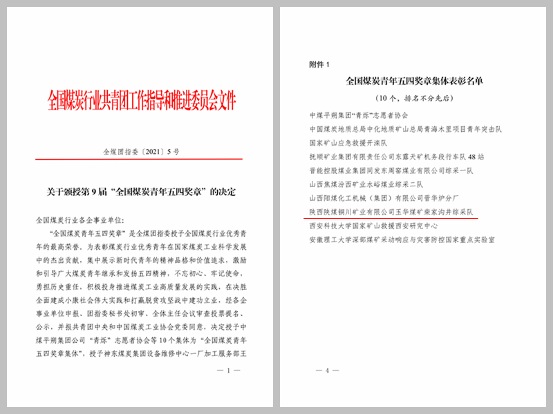 “全國煤炭青年五四獎?wù)隆笔侨珖禾啃袠I(yè)共青團(tuán)工作指導(dǎo)和推進(jìn)委員會授予全國煤炭行業(yè)優(yōu)秀青年的最高榮譽,旨在樹立政治進(jìn)步、品德高尚、貢獻(xiàn)突出的優(yōu)秀青年典型,反映當(dāng)代青年的精神品格和價值追求。全國煤炭系統(tǒng)共有10個集體獲獎,公司柴家溝井綜采隊是陜煤集團(tuán)唯一受到表彰的先進(jìn)集體。