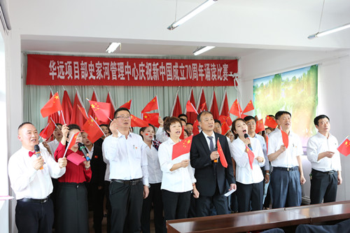 誦讀在全體干部職工一首《我的祖國》大合唱中落下帷幕。