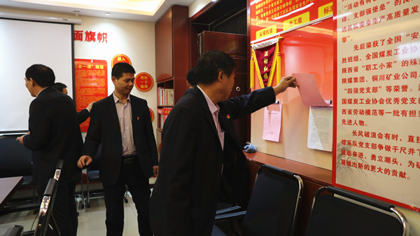 隨后,對(duì)標(biāo)人員在機(jī)關(guān)樓前實(shí)地觀看了“六個(gè)玉華”文化櫥窗,了解了以黨建領(lǐng)航、“智慧礦山”建設(shè)為核心的企業(yè)文化。在綜采隊(duì)黨支部,通過(guò)座談交流、現(xiàn)場(chǎng)觀摩、查閱資料、觀看特色品牌課件等方式,了解黨支部標(biāo)準(zhǔn)化建設(shè)示范點(diǎn)創(chuàng)建方案落地舉措,就黨群部門包?;鶎又Р繀f(xié)助指導(dǎo)制定品牌方案、陣地建設(shè)規(guī)劃,評(píng)價(jià)考核“兩個(gè)作用”發(fā)揮,建立“一崗一隊(duì)”活動(dòng)載體助推原煤生產(chǎn)工作等以示范點(diǎn)引領(lǐng)、分階段推進(jìn)、實(shí)效化考核的工作思路和實(shí)施步驟進(jìn)行了深入交流探討。對(duì)標(biāo)交流人員走進(jìn)對(duì)口科室,圍繞黨建創(chuàng)新、文明建設(shè)、志愿者隊(duì)伍建設(shè)等方面,開(kāi)誠(chéng)布公、毫無(wú)保留的交換工作經(jīng)驗(yàn),相互學(xué)習(xí)借鑒,促進(jìn)共同提升。