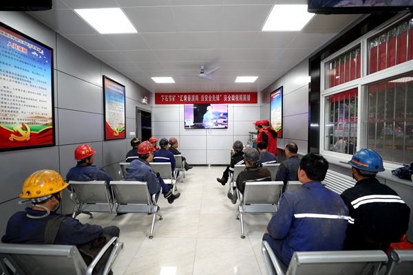 同一時間,該礦井口安全教育室的電視大屏上滾動播出的《安全“救”在身邊》《一念之間》《你“安”家才“全”》等幾期安全微視頻也深受一線干部職工的歡迎。青年志愿者一邊為準備入井和剛剛升井的職工端上一杯安全茶水,招呼大家一起觀看,隨后開展安全知識有獎問答活動,讓大家在看中學,在學中悟,積極將安全理念牢記于心,落實于行。