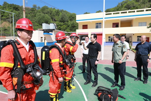 走進(jìn)駐礦救護(hù)中隊(duì)駐地,劉水利觀摩了救護(hù)隊(duì)員日常訓(xùn)練科目演練,查裝備、問理論,希望救護(hù)隊(duì)員堅(jiān)持“加強(qiáng)戰(zhàn)備、嚴(yán)格訓(xùn)練、主動(dòng)預(yù)防、積極搶救”的原則,練就過硬本領(lǐng),為企業(yè)安全生產(chǎn)保駕護(hù)航。