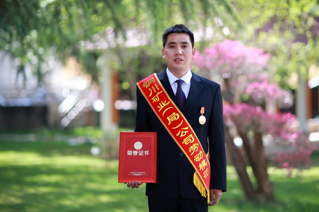 千尺井下,采煤機旁,總能看到一個濃眉大眼、身形挺拔的青年人,每日里穿梭在智能綜采設備之間巡查。他就是剛剛榮獲銅川礦業(yè)公司2023-2024年度勞動模范稱號,來自玉華礦綜采隊機電檢修班長的朱學敏,十六年寒來暑往,他以匠心為筆、以擔當為墨,在煤海深處書寫著勞動奮斗篇章。