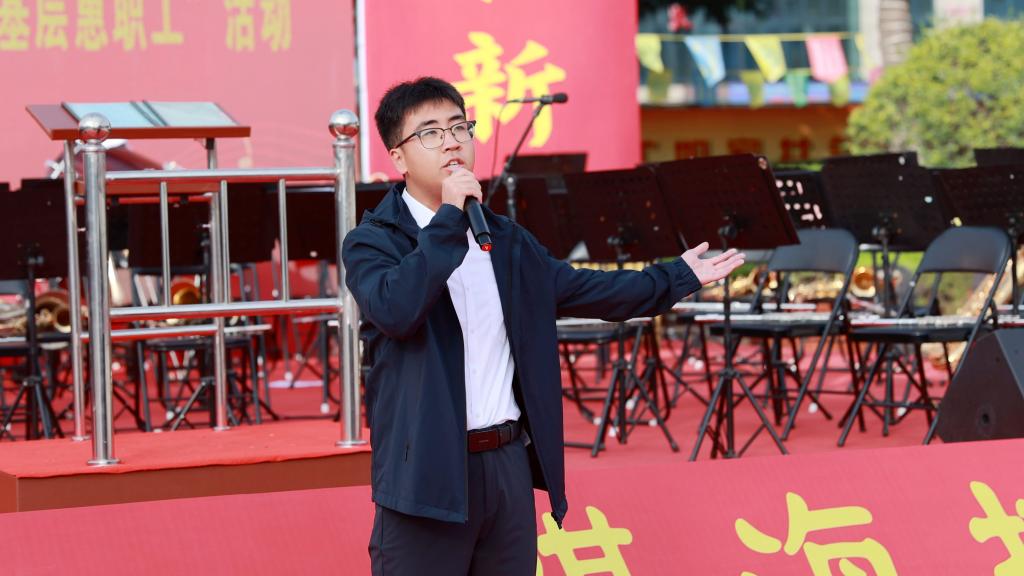 演出分上半場(chǎng)、下半場(chǎng)進(jìn)行。上半場(chǎng)演出在交響管樂《紅旗頌》的激昂旋律中拉開序幕,氣勢(shì)磅礴的樂章、震撼人心的旋律,將家國(guó)情懷、奮進(jìn)力量傳遞到現(xiàn)場(chǎng)的每一名職工的心中。